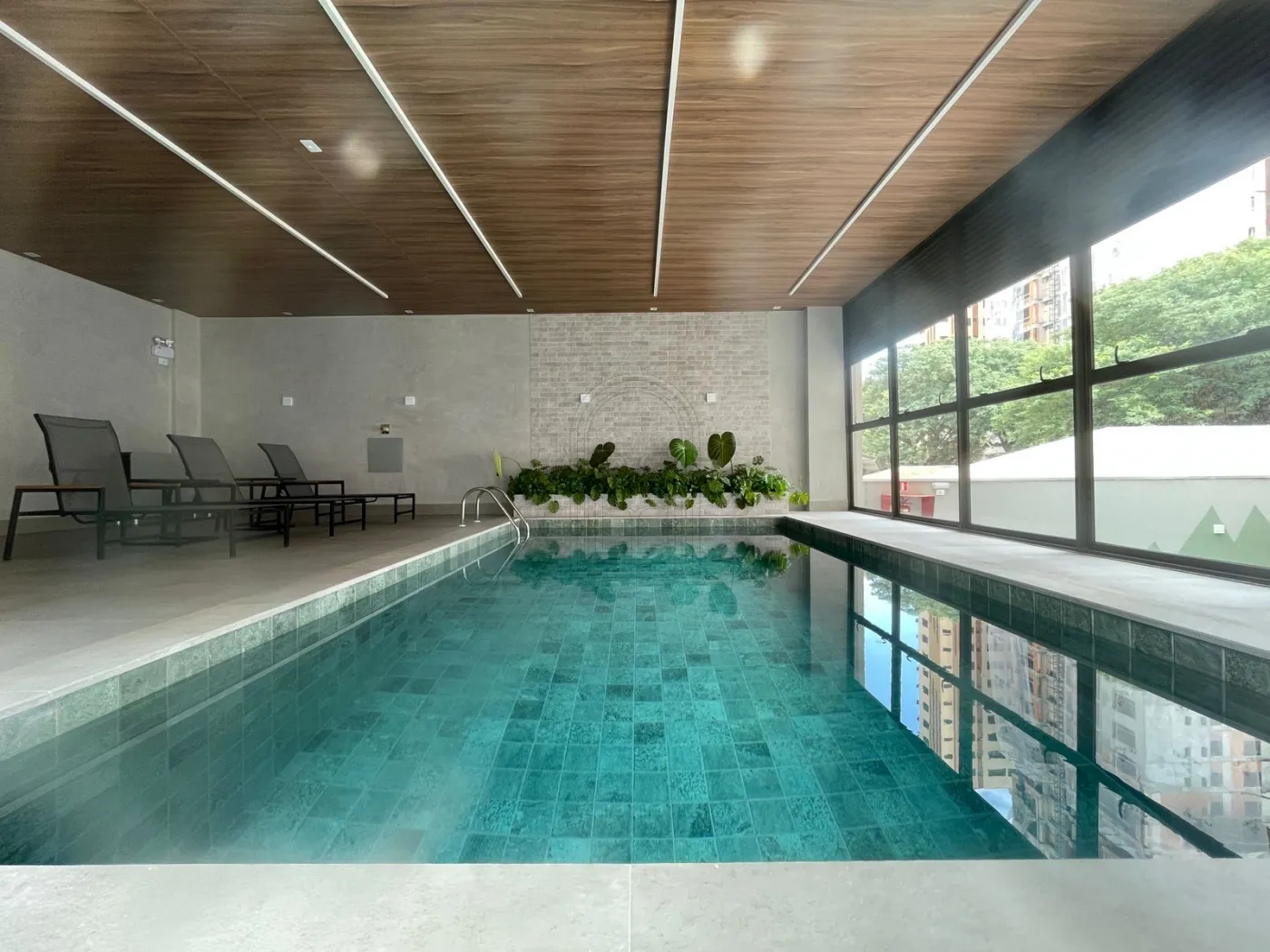 Piscina aquecida e coberta