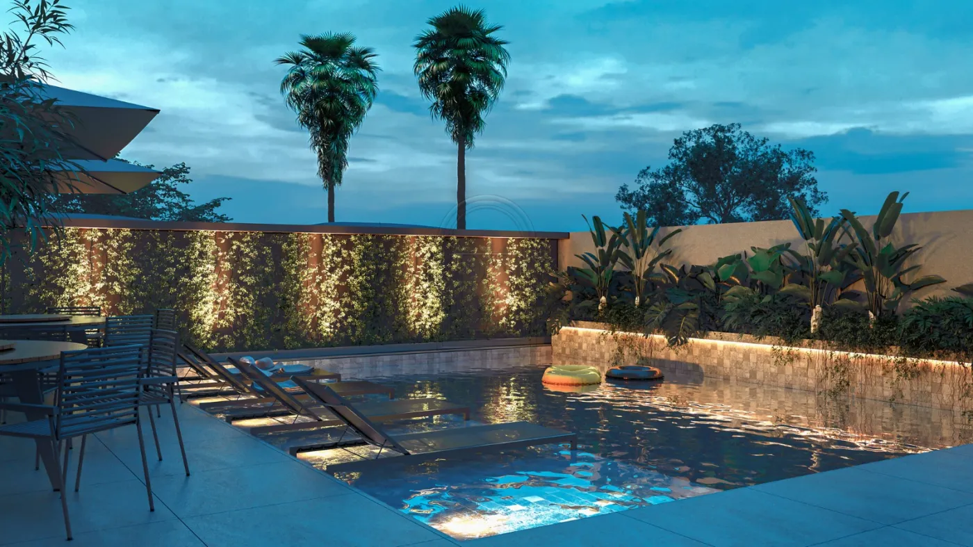 - Área de lazer completa com: Piscina com prainha e aquecida, espaço fitness, espaço gourmet, lavanderia, salão de festas,